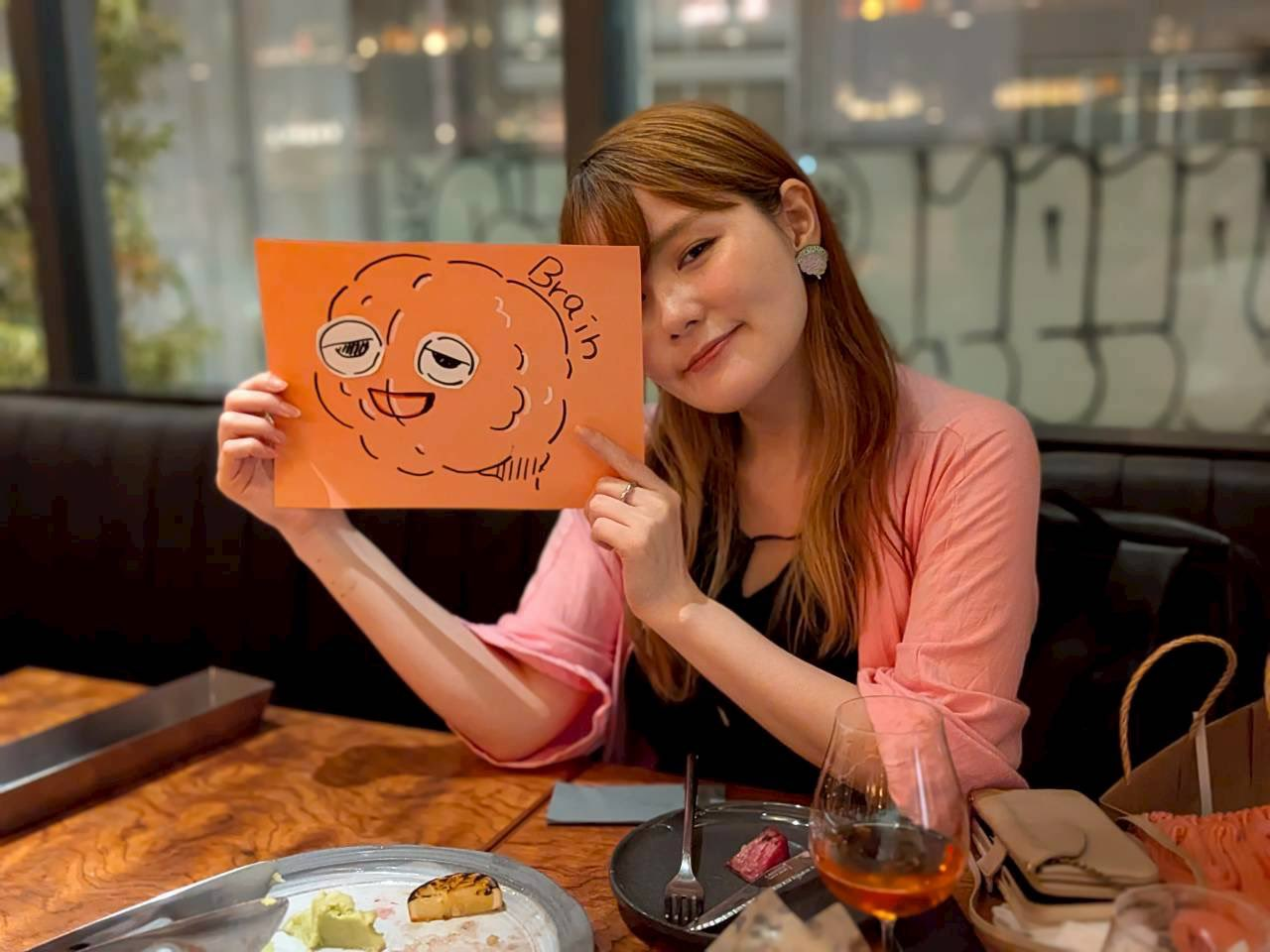 今回は楽しんでいただけるように、脳みその帽子を被り、脳みそのイラストを引き連れていきました。